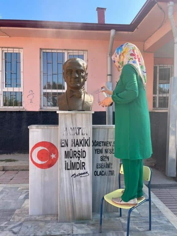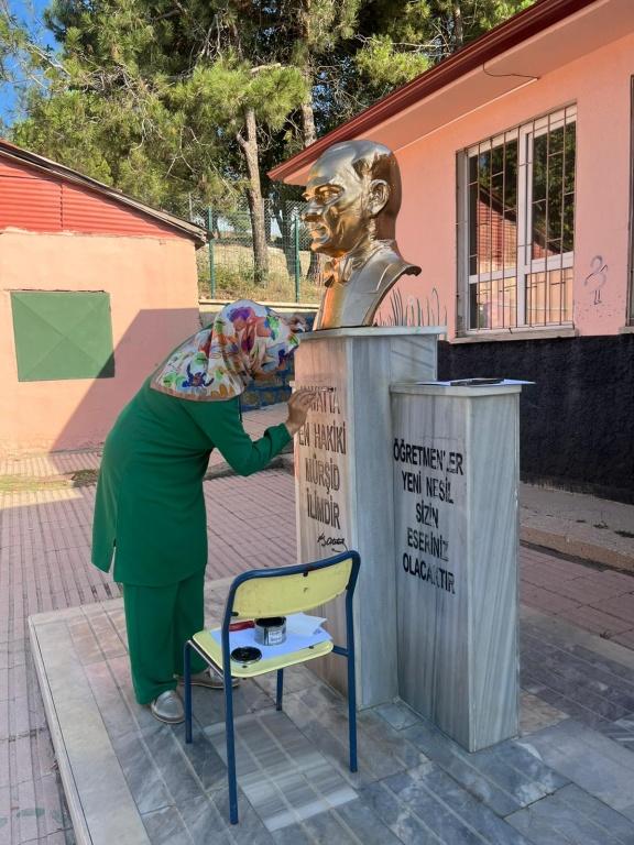 ATATÜRK BÜSTÜMÜZÜ YENİDEN BOYADIK.